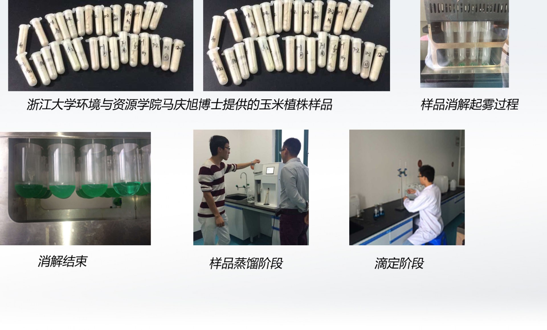 浙江大學博士馬慶旭,于2015年10月來我公司實踐指導。在馬老師的參與下,用我公司自主研發生產的XTG-5200碳纖維消化爐、NKB-3100定氮儀,對9種批次的玉米桿粉末,進行了蛋白質的消化和蒸餾實驗。
